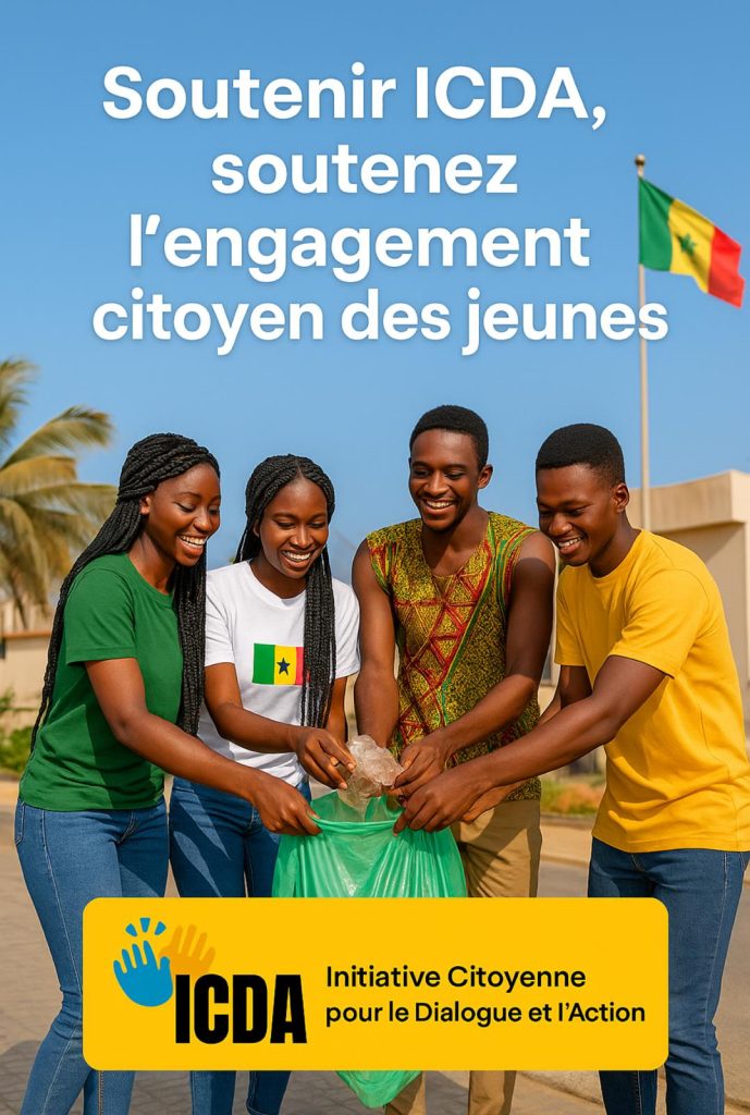 Fundraising Soutenir ICDA Soutenez l'engagement citoyen des jeunes Ensemble, faisons de la jeunesse le moteur du Sénégal de demain. Soutenir ICDA, c’est : Favoriser la cohésion sociale Lutter contre le désengagement civique Créer un espace de confiance entre jeunes et institutions Former des citoyens actifs, informés et engagés Play Ce que nous vous offrons en retour Visibilité sur nos supports (TV, presse, réseaux sociaux, site web) Logos sur les T-shirts, roll-ups, vidéos et documents officiels Droits d’intervention lors de la finale nationale ou du congrès Mention dans les communiqués de presse et interviews